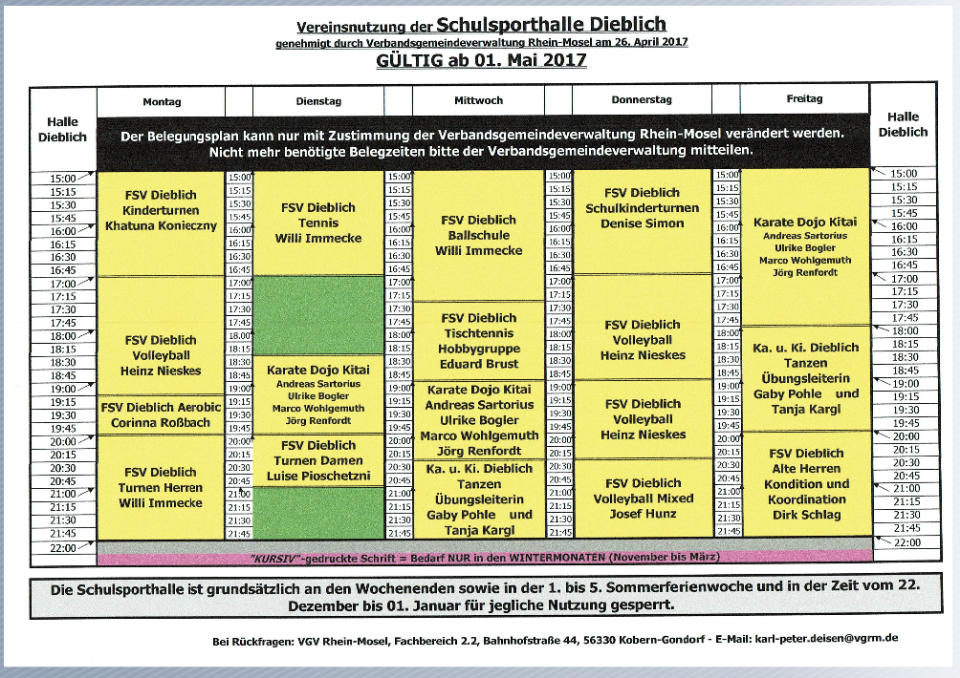 Belegung Schulsporthalle Dieblich - fsv-dieblich